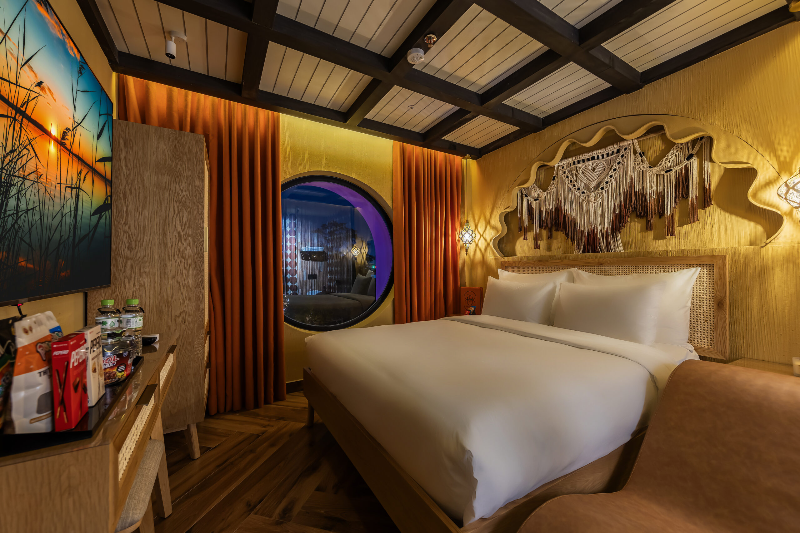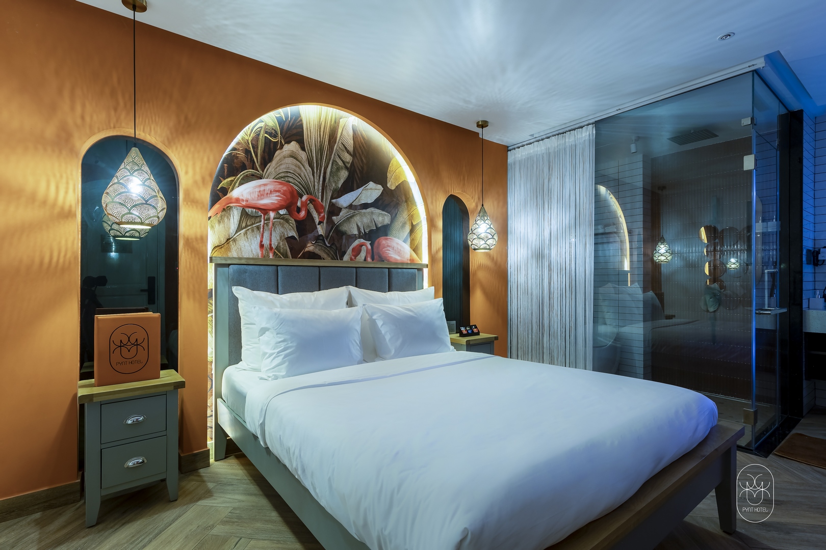 Pynt Hotel 8 được kiến tạo như một vương quốc bộ lạc đương đại, lấy cảm hứng từ văn hóa châu Phi nguyên sơ: mạnh mẽ, tự do và đầy mê hoặc. Không gian mang dấu ấn tribal rõ nét với họa tiết hình học, chất liệu thô mộc, ánh sáng ấm và bảng màu đất đặc trưng — nơi mỗi chi tiết đều gợi lên nhịp đập của thiên nhiên và bản năng con người. Mỗi tầng tại Pynt 8 là một “lãnh địa cảm xúc” riêng biệt, đại diện cho những sắc thái khác nhau của đam mê và kết nối — từ tò mò, cuốn hút, bùng cháy đến hòa quyện. Tất cả hòa quyện thành một tổng thể hoang dã nhưng tinh tế, nơi tình yêu được sống trọn trong trạng thái tự do và nguyên bản nhất.
