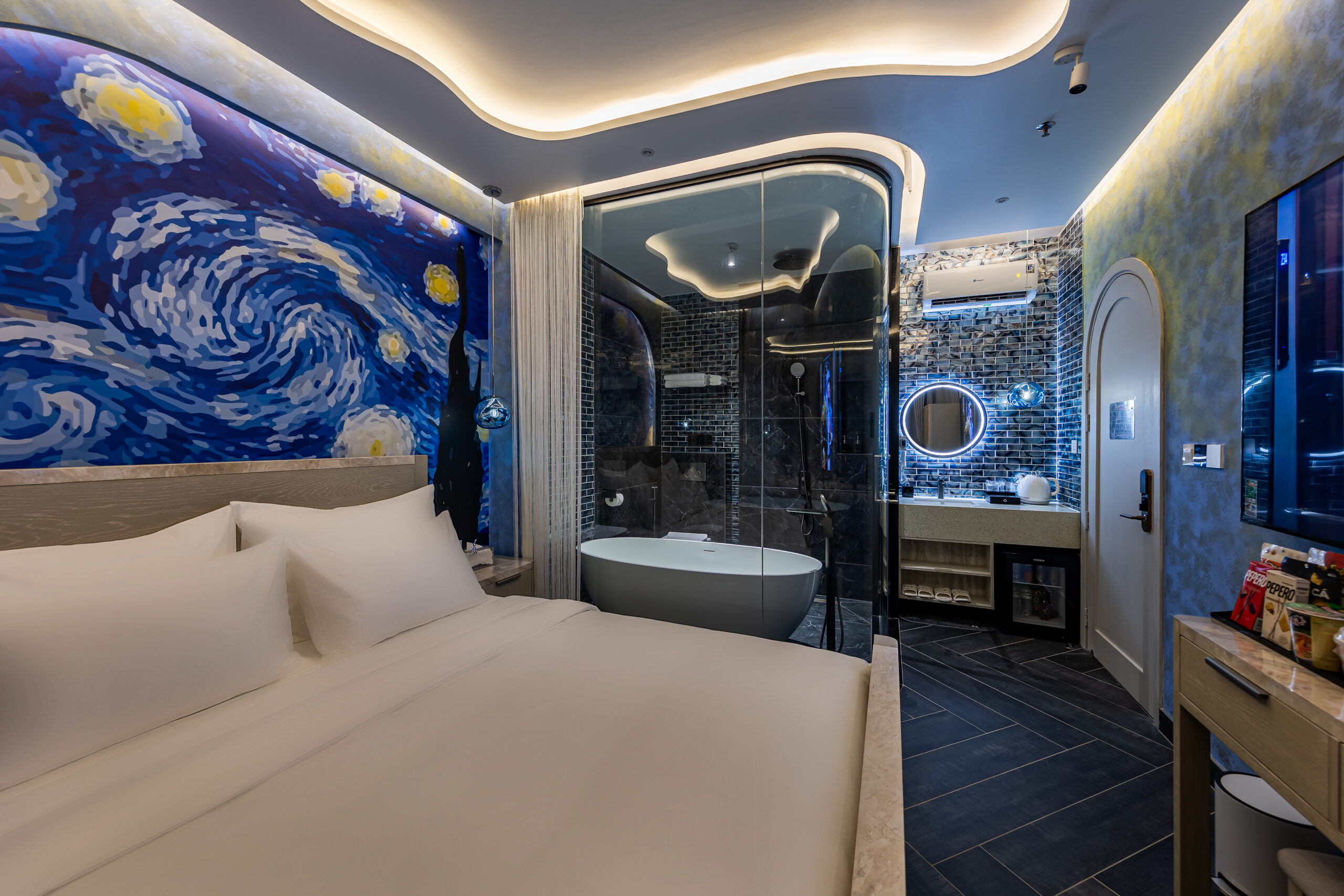Pynt Hotel 4 gồm 6 tầng với 25 phòng, nổi bật qua các concept như Pha Lê, Hổ Phách, Tình Yêu Bất Tử, Đế Chế La Mã và Cung Điện Hoàng Gia. Mỗi tầng là một chương trong hành trình cảm xúc – từ vẻ đẹp tinh khiết của Pha Lê, ký ức vàng son trong Hổ Phách, đến những chuyện tình vượt thời gian, sự huy hoàng của triều đại La Mã và đỉnh cao nghệ thuật nơi cung điện – tất cả được hòa quyện trong không gian đầy cảm xúc.